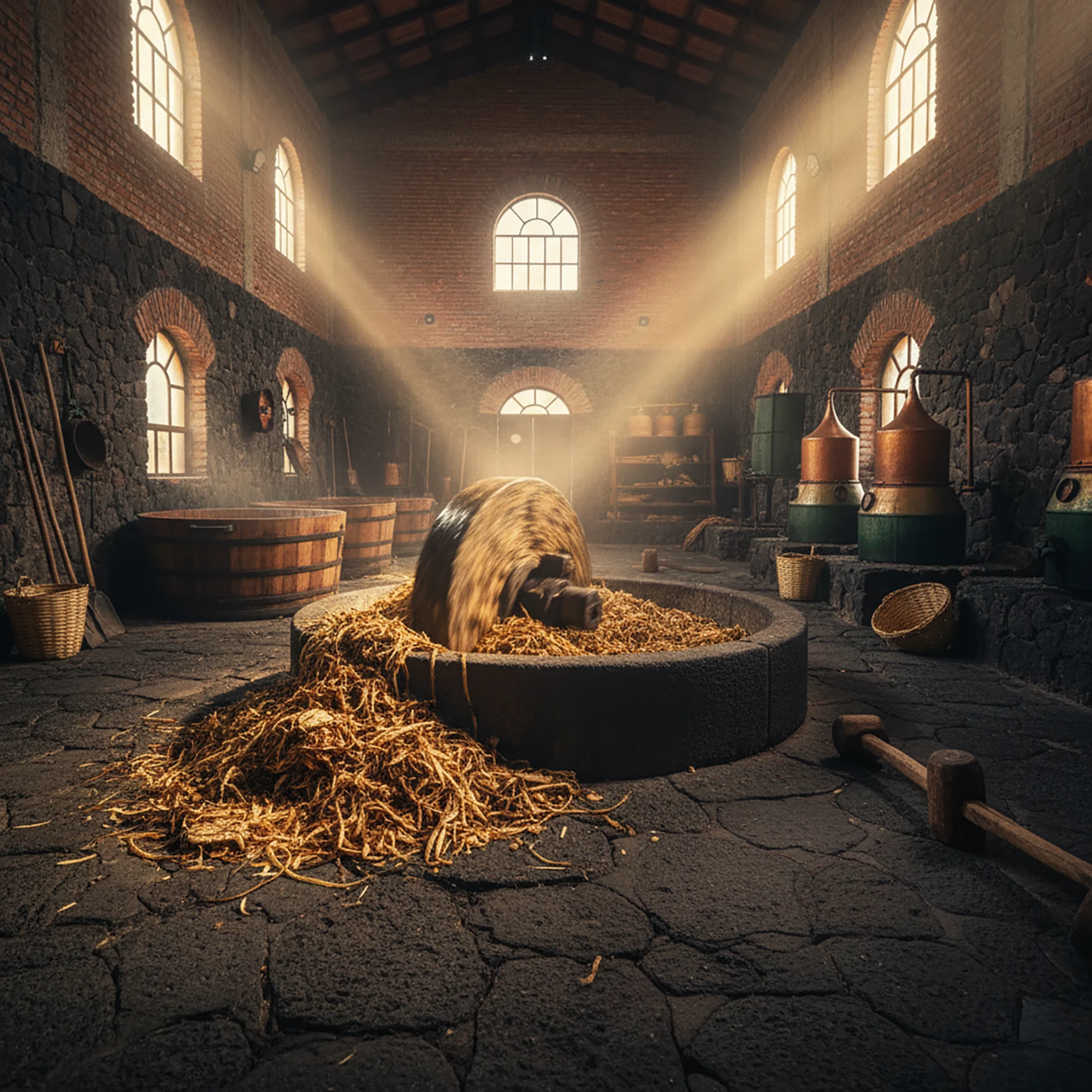 - Ground with a stone tahona.